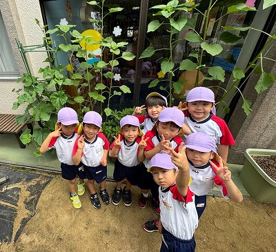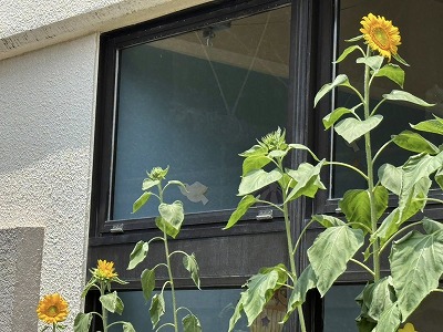 ぞう組さんがひまわりが咲いたことを教えてくれました