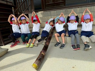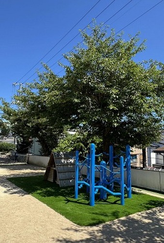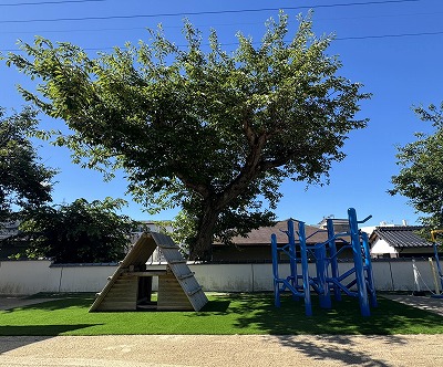 最近は木登りができる機会が減少しておりますが、子どもたちが楽しみながら身体をどう使うか考え、幹にまたがったりぶら下がったりしてもらいたいと思います。