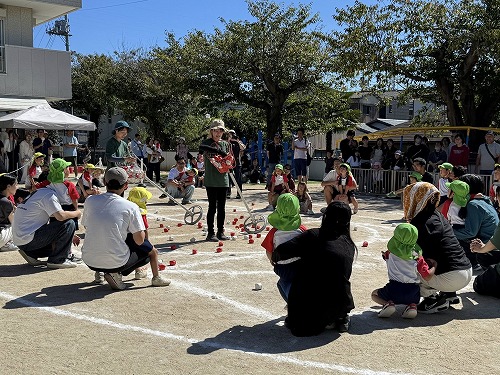 各クラスの親子競技では騎馬戦、デカパン競争等ほほえましい様子を拝見いたしました