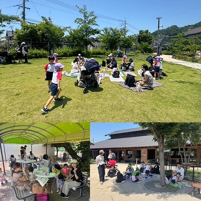 お弁当は、芝生の上で食べる方、ねいちゃる館で食べられる方といろいろでした。