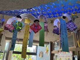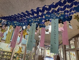 子どもたちの願いが書かれた短冊が飾られていますよ