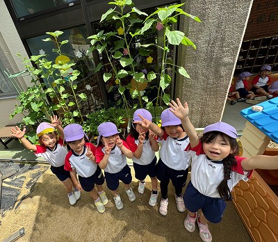 ぞう組さんがひまわりが咲いたことを教えてくれました