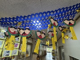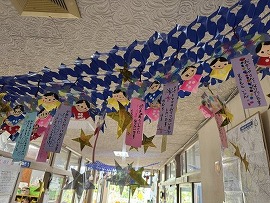 子どもたちの願いが書かれた短冊が飾られていますよ