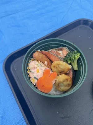 大き目のお弁当箱に白ご飯を入れてきてもらい、
